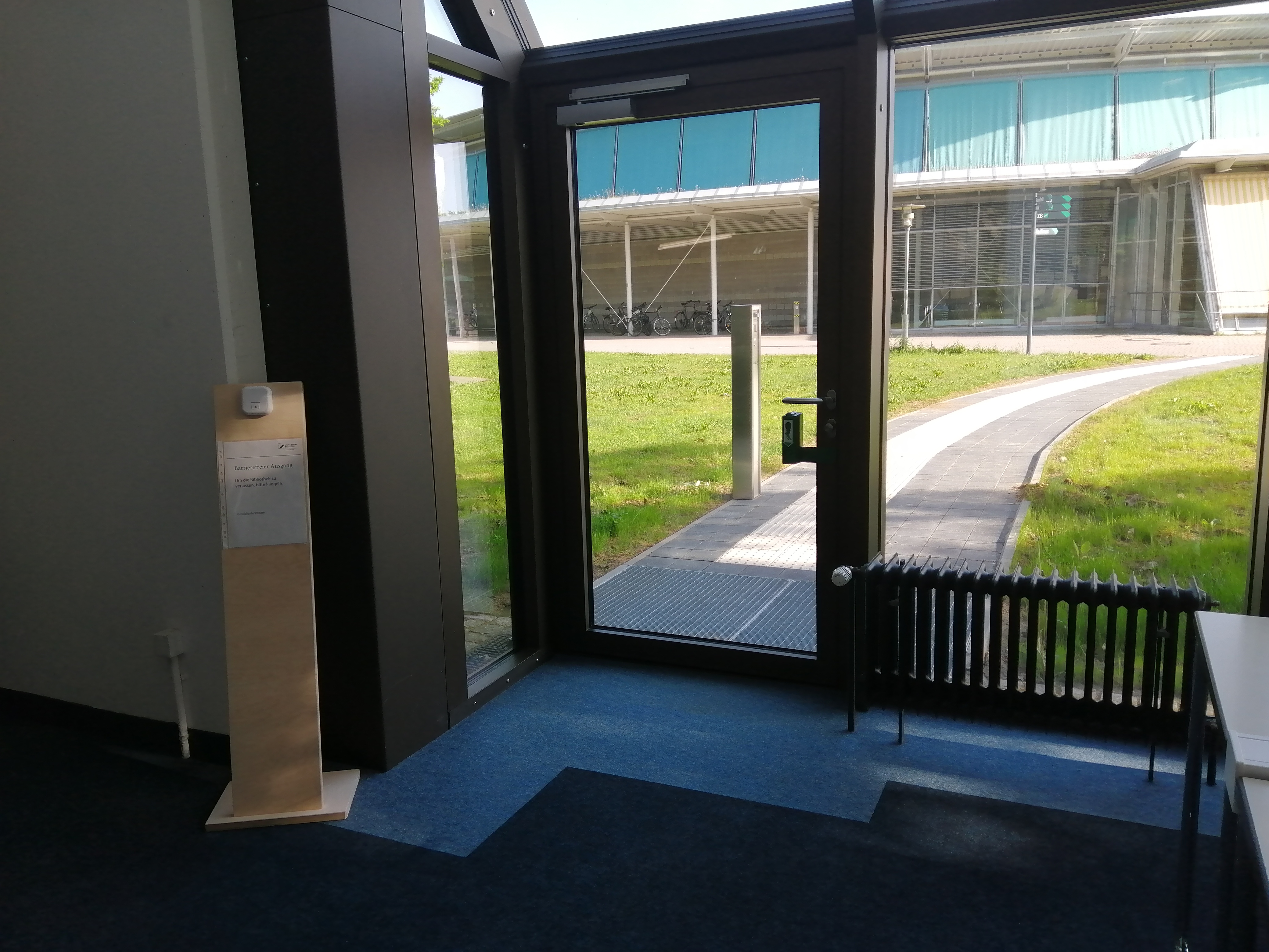 Teilbibliothek NW I (Biologie und Chemie) wurde ein neuer gepflasterter Weg aus Richtung des Audimax angelegt und eine Tür in die Glasfassade integriert.